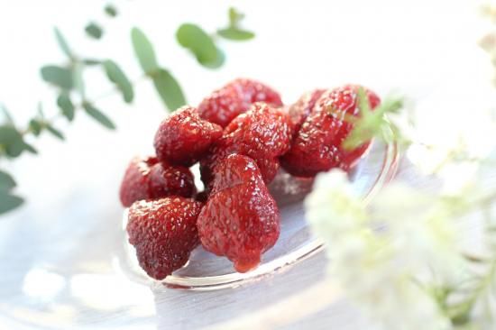 そのかおるさんのイチゴをシロップに漬け込んで、セミドライにしたところ